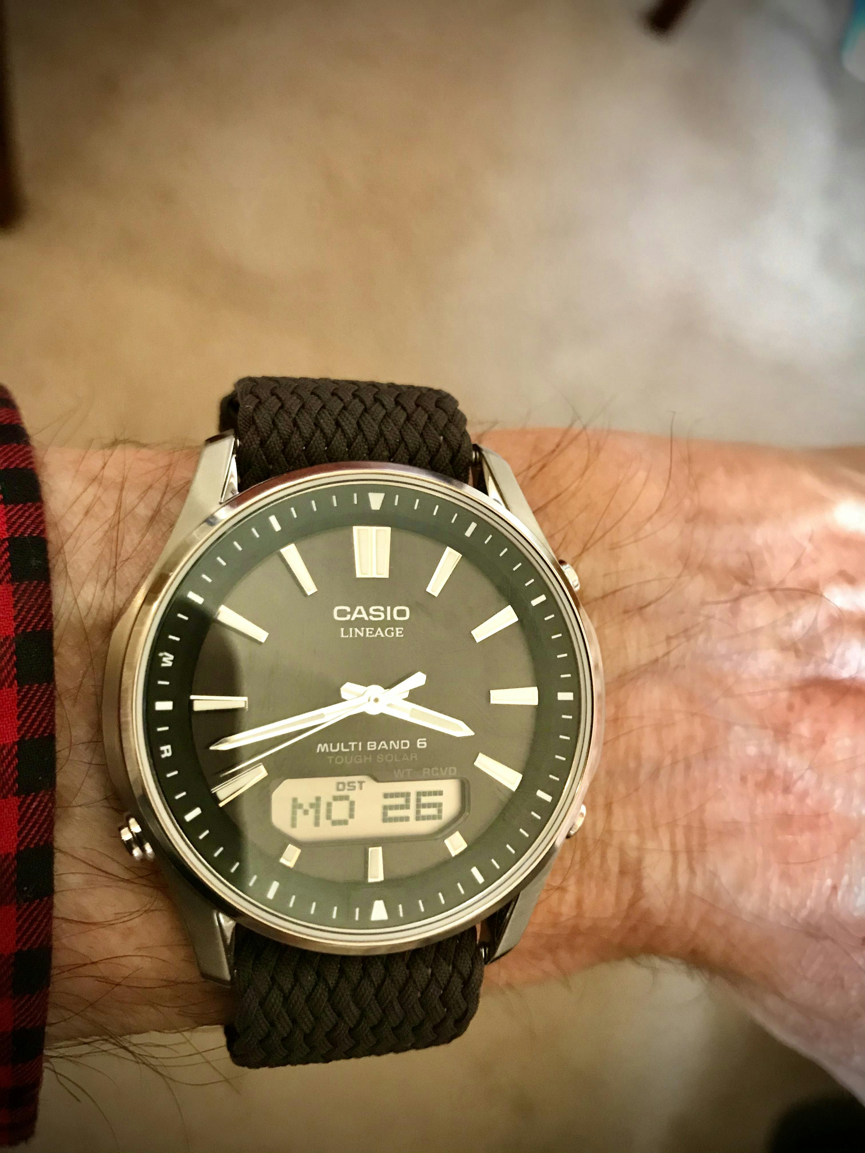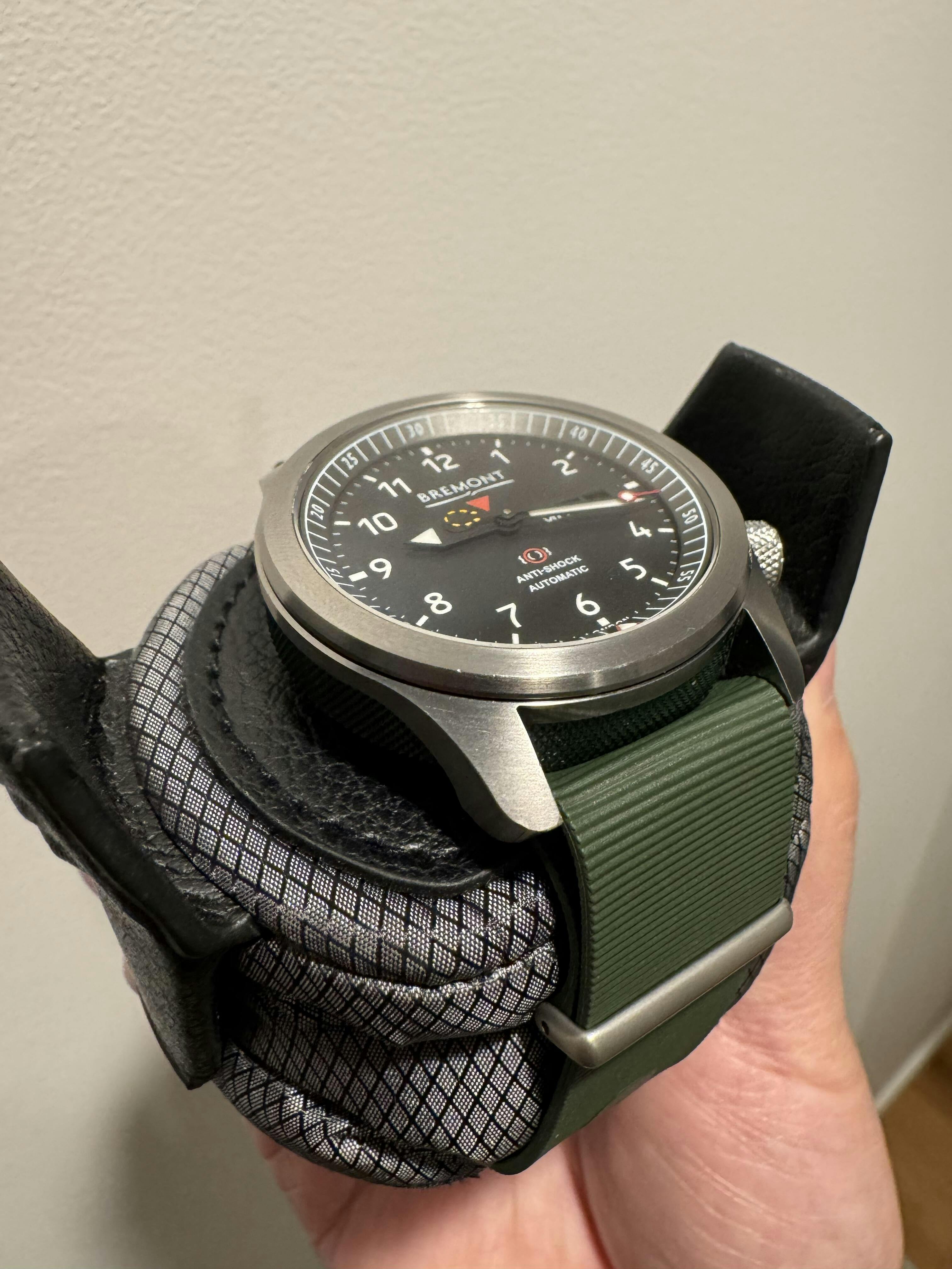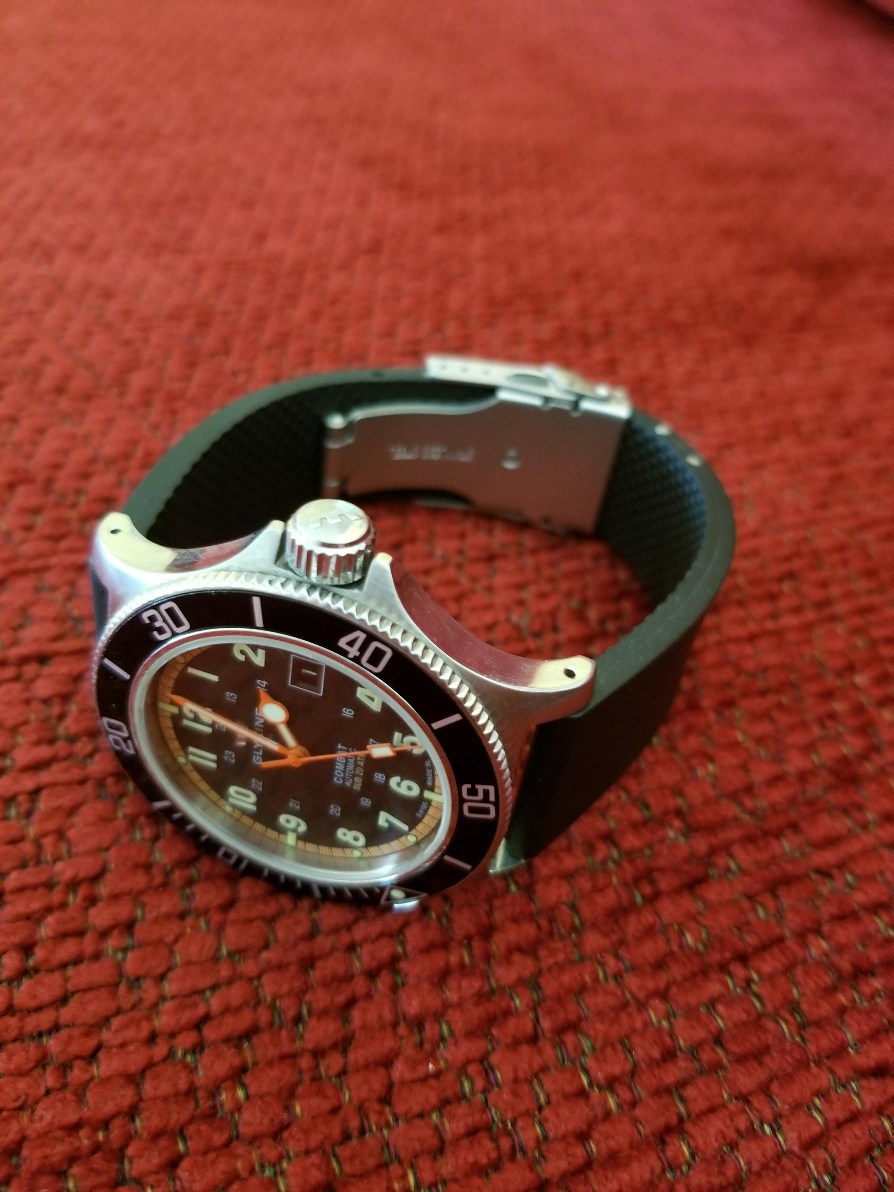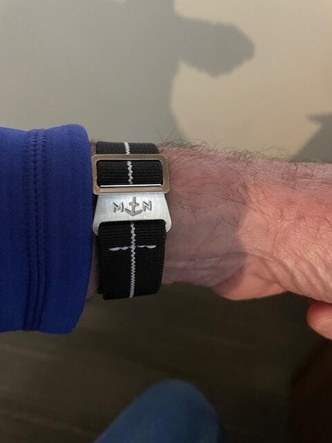 Second NATO strap. First one aged out after 5 years of saltwater use and world travel. Got a green colored rubber NATO to match the barrel this time. Comfortable and light and decent longevity.