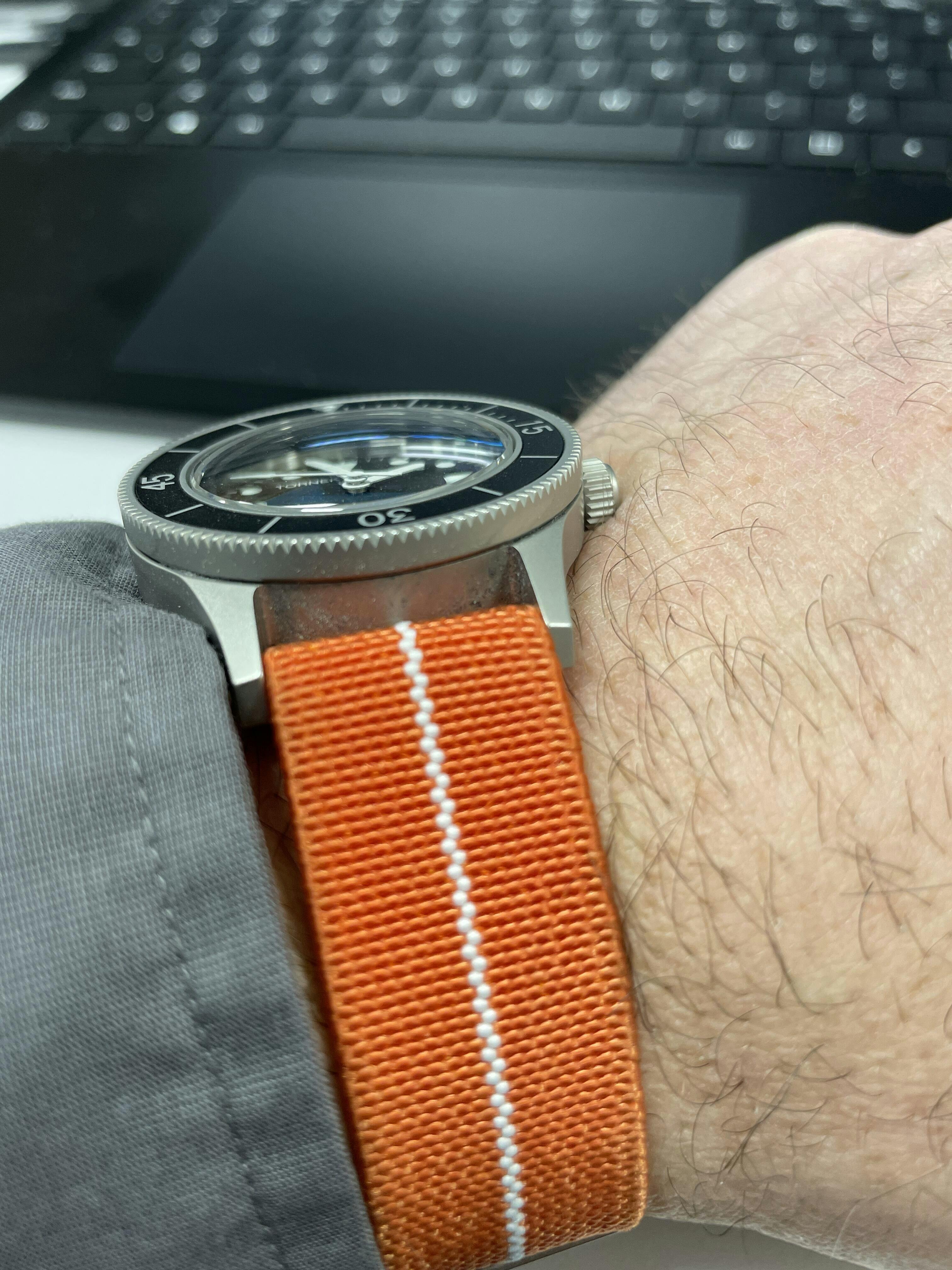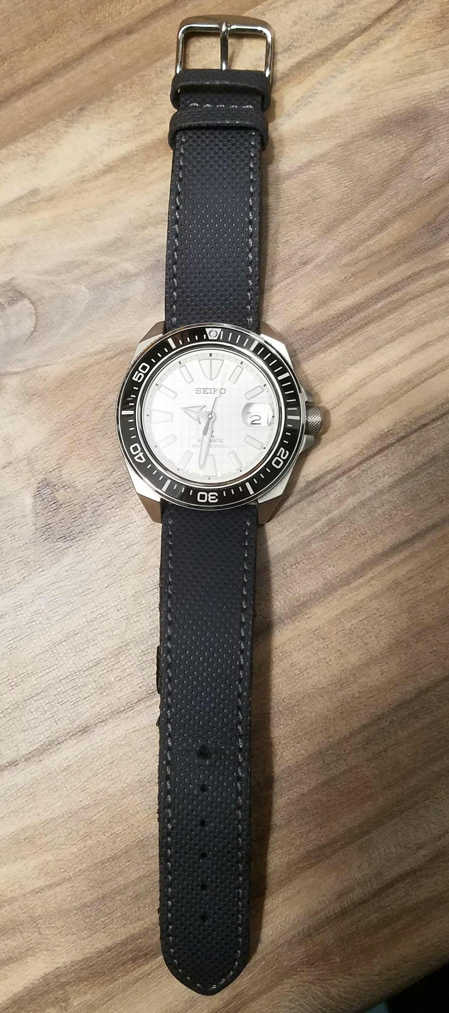 I am impressed. Classy band for my Seiko Prospex. Swapped out the Silicone Dive band for this grey waterproof band. Looks like a totally different watch which is more suitable for general usage. Band was stiff upon arrival (as expected). Just roll it a bit prior to install, especially towards the pin ends. It loosens right up and wears nicely. I will most likely try some different versions as this band as it wears wonderfully .