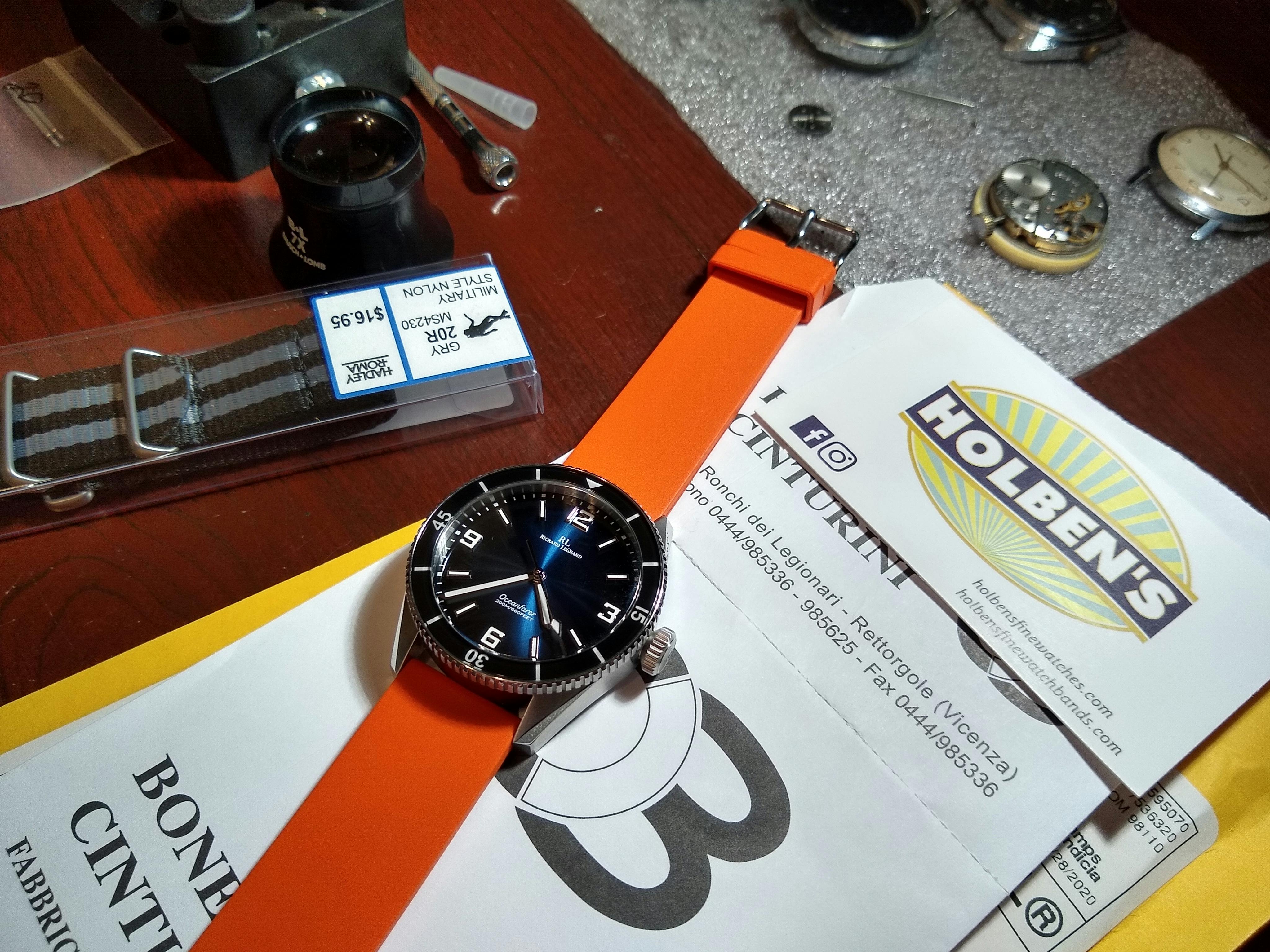 Just received my new Bonetto Cinturini 270 strap. LOVE IT!! It’s my second Bonetto strap. I really believe they are, by far, the best rubber straps you can buy. The vanilla scent is great, and people are always surprised when I mention it’s vanilla scented. They gotta get a sniff. 😏 I actually reversed the buckle on this strap because I love the look of the textured part on the outside. Feels great! Thanks for the great service and quick delivery. Holbens!