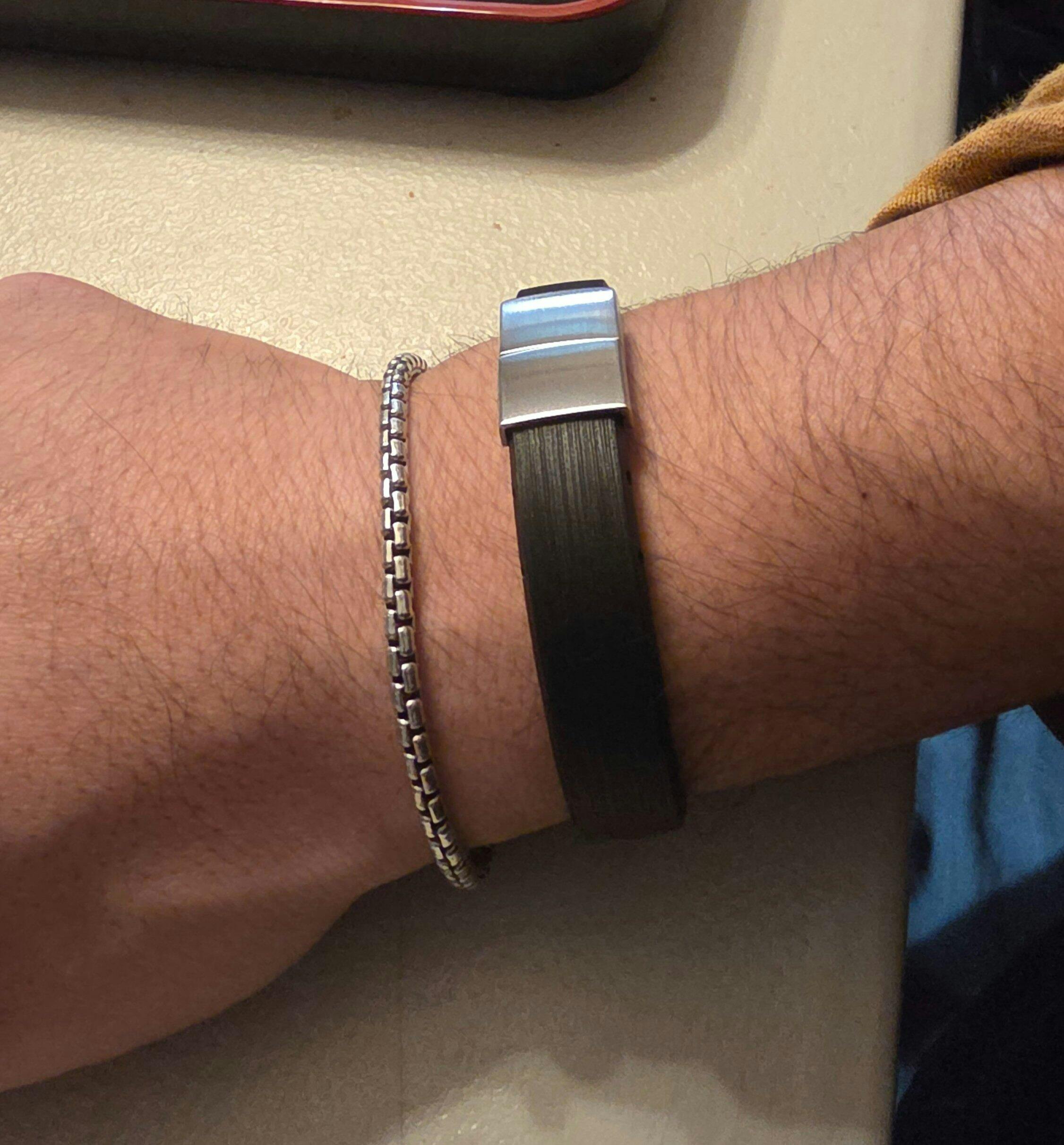 Of course bonettos straps are quality, so I wanted to try out one of there bracelets since my leather bracelet i was wearing before wore out and ripped eventually from getting it wet while washing my hands all the time. I really like the bon5 , the brushed look gives it some class, and the thickness and width matches perfectly with my silver bracelet, just be sure to watch how you cut for sizing, I was too hasty in cutting near the hole and cut too close so I had to go down another notch, still fits fine but I would've liked a little bit more slack. Overall it's a great bracelet and I never have to worry about it getting damaged from water or sun. Thank you holbens!!