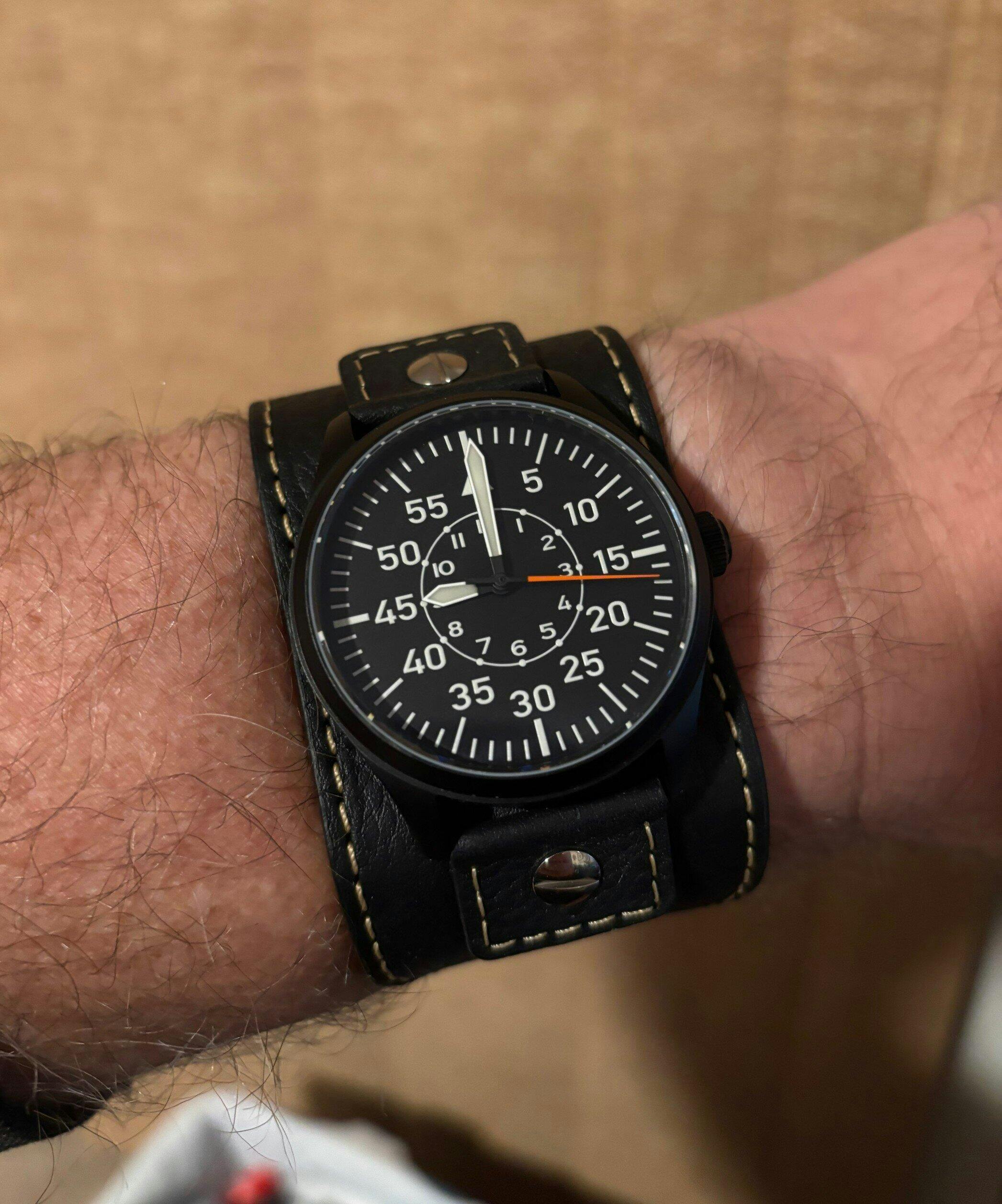 This is my second Eulit bund, and I love it! The strap is wide enough (45mm) for a large-ish watch case (42mm) and long enough to fit my larger-than-average wrist (205mm) reasonably well. The leather is soft enough to be comfortable, but stiff enough to not be floppy. If I have a complaint, it's that I wish there was a version of this strap which had black stitching, but it's otherwise a great strap.