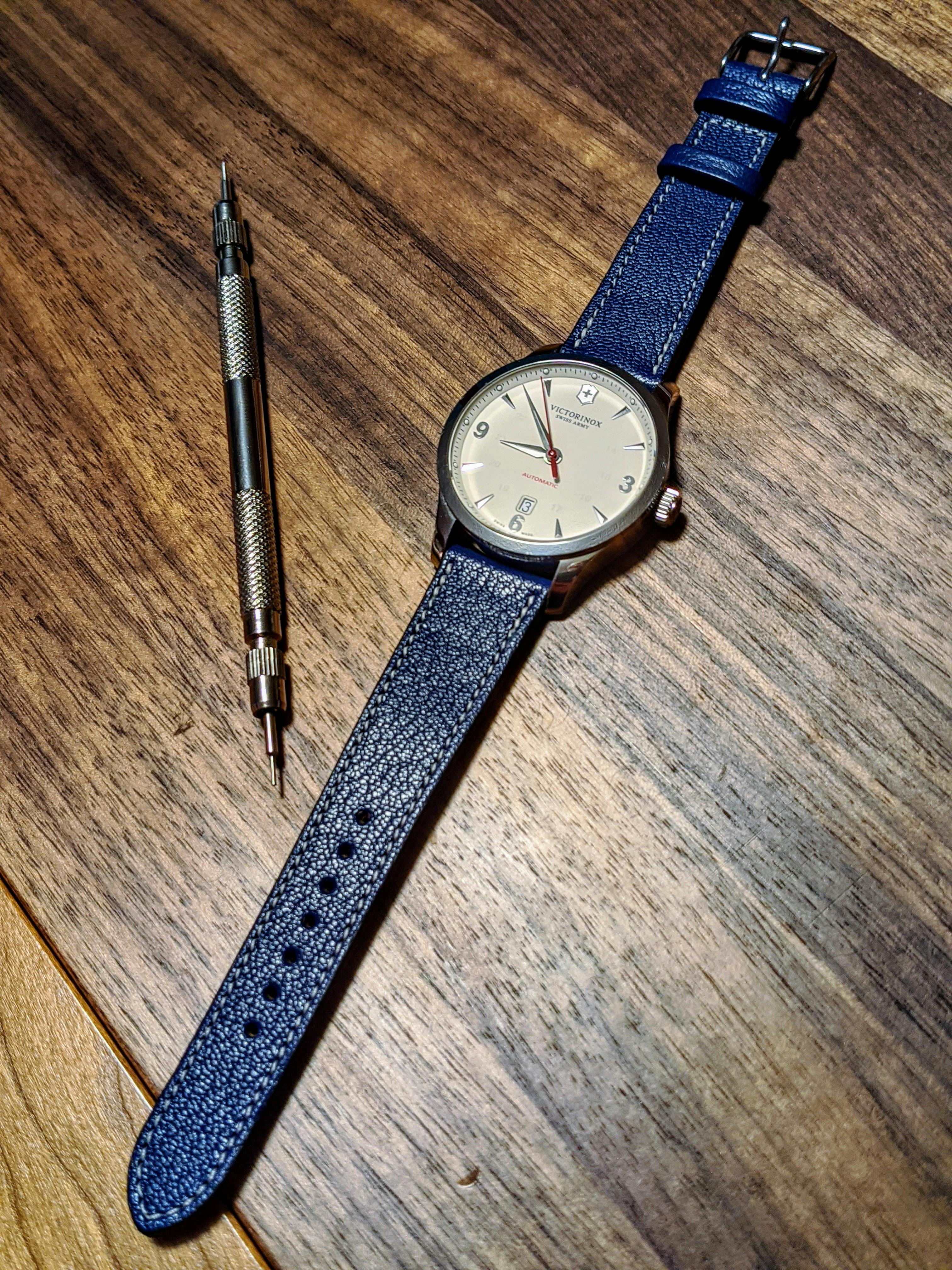 I love the blue leather on this strap so much. It's very comfortable and looks beautiful.
